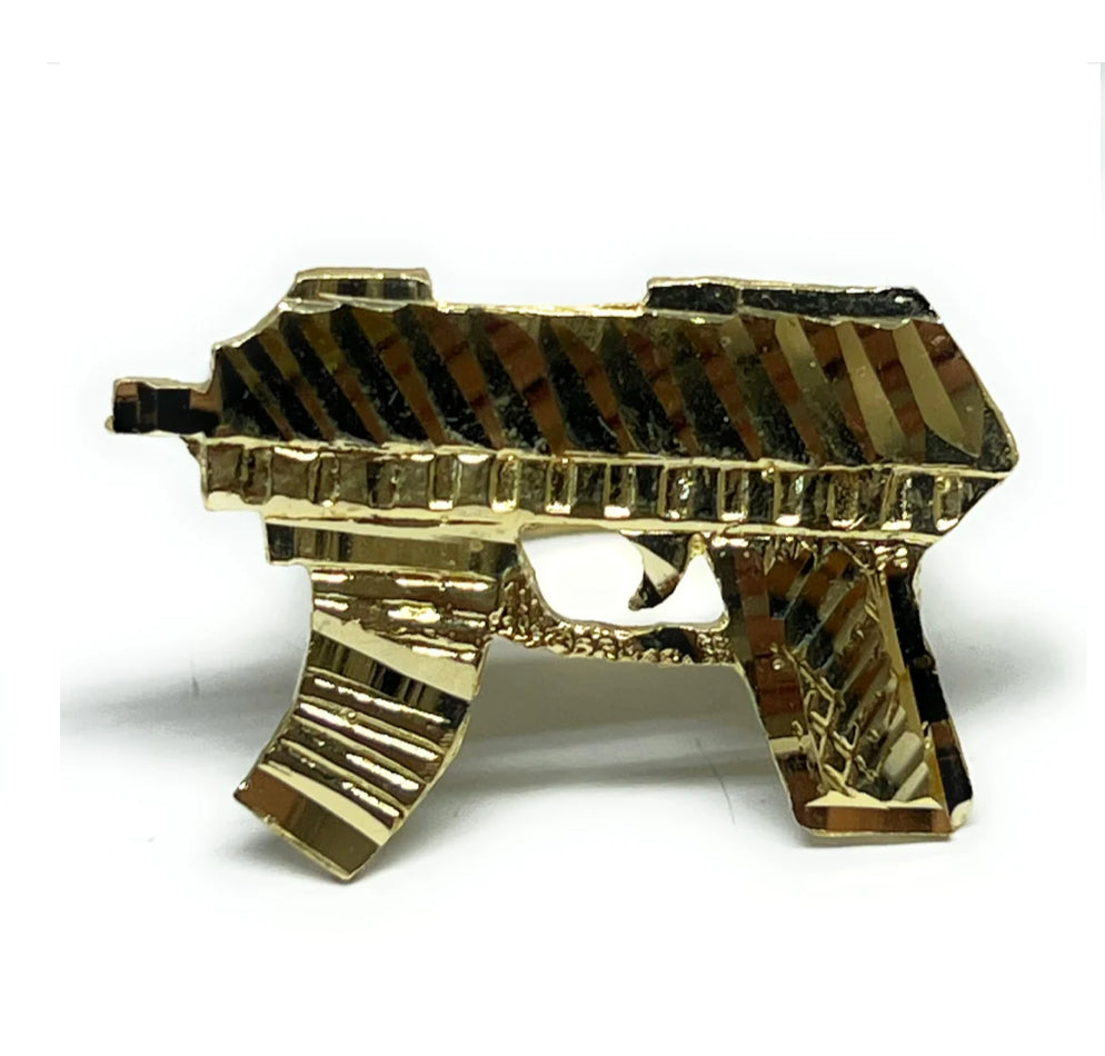 Make a bold statement with this eye-catching Uzi gun ring, designed for those who like their jewelry loud and unique. Crafted with a high-quality gold-filled finish, this piece delivers the look and shine of real gold without the high price.